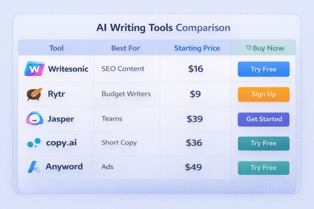 If you’re exploring more AI writing platforms, other options include tools like Jasper, Copy.ai, and Anyword. However, for most bloggers and affiliate marketers, Writesonic and Rytr provide the best balance of price, features, and ease of use.